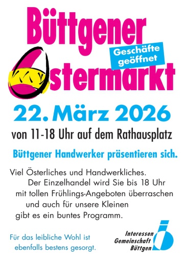 Die Mitglieder der IG Büttgen informieren Sie über ihre tagesaktuellen Öffnungszeiten jeweils über ihre eigenen Homepages, die Sie hier unter „Mitglieder“ finden, sowie über Facebook und die lokale Gruppe „Du bist Büttger, wenn.. „